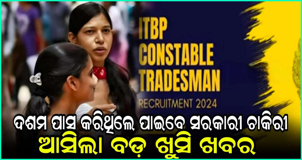 ନମସ୍କାର ବନ୍ଧୁଗଣ। ବନ୍ଧୁଗଣ ୧୦ ପାସ କରିଥିବା ପିଲାଙ୍କ ପାଇଁ ସୁବର୍ଣ୍ଣ ସୁଯୋଗ। ଆଇଟିବିପି ଆଣିଛି ଏକ ବଡ଼ ନିଯୁକ୍ତି।ଆଇଟିବିପି କନେଷ୍ଟବଳ ଟ୍ରେସ ମ୍ୟାନ ପଦରେ ଆବେଦନ ପାଇଁ ରେଜିଷ୍ଟ୍ରେସନ୍ ଲିଙ୍କ ରହିଛି। ଯେଉଁ ମାନେ ଏହି ପଦବୀ ପାଇଁ ଇଛୁକ ସେମାନେ ଶେଷ ତାରିଖ ଶୁଣିବା ପୂର୍ବରୁ ଫର୍ମ ପକେଇ ପାରିବେ। ଆବେଦନ ଜୁଲାଇ ୨୦ ତାରିଖରୁ ଆରମ୍ଭ ହେଇଯାଇଛି। ଯାହା ଅଗଷ୍ଟ ୧୮ ତାରିଖ ୨୦୨୪ ପର୍ଯ୍ୟନ୍ତ ଜାରି ରହିବ। ନିଯୁକ୍ତି ଜରିଆରେ ମୋଟ ୫୧ଟି ପଦବୀ ପୂରଣ କରାଯିବ। ଆଉ ଏହି ପଦବୀ ଗୁଡିକୁ ହେଲା କନେଷ୍ଟବଳ ଏବଂ ଟ୍ରେସ ମ୍ୟାନ। ଏଥିପାଇଁ କେବଳ ଅନଲାଇନରେ ଆବେଦନ କରାଯାଇପାରିବ।