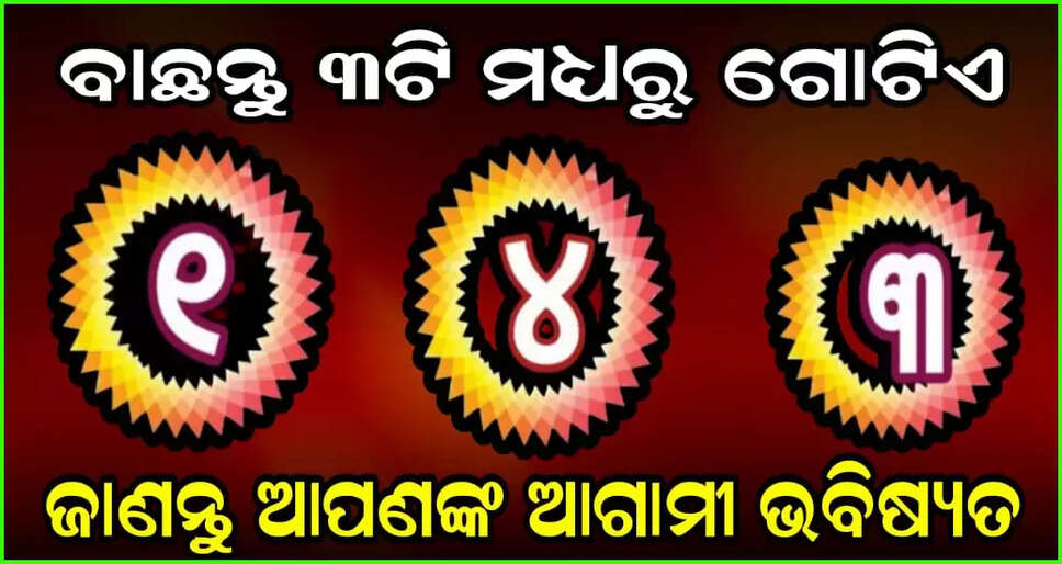 ନମସ୍କାର ବନ୍ଧୁଗଣ। ବନ୍ଧୁଗଣ ପ୍ରତ୍ୟେକ ବ୍ୟକ୍ତି ନିଜ ନିଜର ଭବିଷ୍ୟତ ବିଷୟରେ ଜାଣିବା ପାଇଁ ଆଗ୍ରହ ପ୍ରକାଶ କରିଥାନ୍ତି। ଏଥିପାଇଁ ଅନେକ ଲୋକ ଜ୍ୟୋତିଷ ମାନଙ୍କ ପରାମର୍ଶ ନେଇଥାନ୍ତି। ନିଜ ଭବିଷ୍ୟତ ସହିତ ଯୋଡିତ କଥା ମାନ ଜାଣିବା ପାଇଁ ଜ୍ୟୋତିଷ ଶାସ୍ତ୍ରର ଗଣନା କରିଥାନ୍ତି। ଆଜି ଆମେ ଆପଣ ମାନଙ୍କୁ ଏମିତି ଏକ ବିକଳ୍ପ ମାଧ୍ୟମରେ ଆପଣଙ୍କ ଭବିଷ୍ୟତ ସହିତ ଯୋଡିତ କିଛି ଘଟଣା ଜାଣିପାରିବେ। ଏଥିପାଇଁ ଆପଣଙ୍କୁ ୩ଟି ସଂଖ୍ୟା ମଧ୍ୟରୁ ବାଛନ୍ତୁ ଗୋଟିଏ ସଂଖ୍ୟା ଆଉ ଜାଣନ୍ତୁ ଆପଣଙ୍କ ଭବିଷ୍ୟତ ବିଷୟରେ।