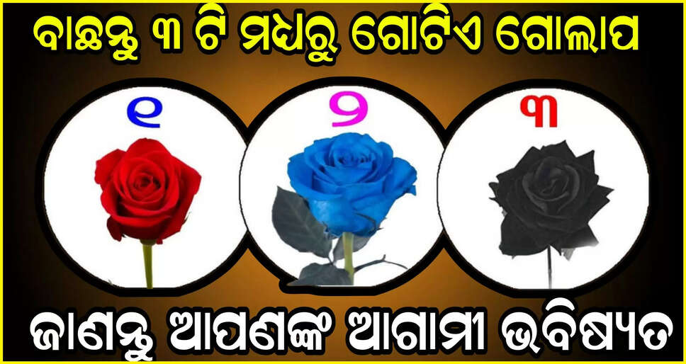ନମସ୍କାର ବନ୍ଧୁଗଣ। ବନ୍ଧୁଗଣ ଭାରତର ଅଧିକାଂଶ ଲୋକମାନେ ନିଜ ଭାଗ୍ୟ ଓ ଭବିଷ୍ୟତ ସହ ଜଡିତ କଥାସବୁ ଜାଣିବା ପାଇଁ ଜ୍ଯୋତିଷ ଶାସ୍ତ୍ର ଉପରେ ନିର୍ଭର କରିଥାନ୍ତି। ଜ୍ଯୋତିଷ ଅନୁସାରେ ବ୍ୟକ୍ତିଙ୍କ ପସନ୍ଦ ଓ ନାପସନ୍ଦରୁ ମଧ୍ୟ ତାଙ୍କ ସ୍ଵଭାବ, ବ୍ୟକ୍ତିତ୍ବ ଭବିଷ୍ୟତ ବିଷୟରେ ଅନେକ କିଛି ଜାଣି ହୁଏ। ଏଥିପାଇଁ ଦିଆ ଯାଇଥିବା ଏହି ତିନୋଟି ରଙ୍ଗର ଗୋଲାପ ମଧ୍ୟରୁ ଗୋଟିଏ ଚୟନ କରି ଆପଣ ନିଜ ଭବିଷ୍ୟତ ସହ ଜଡିତ ଅନେକ କଥା ଜାଣିପାରିବେ। ତେବେ ବନ୍ଧୁଗଣ ବାଛନ୍ତୁ ଗୋଟିଏ ରଙ୍ଗର ଫୁଲ।