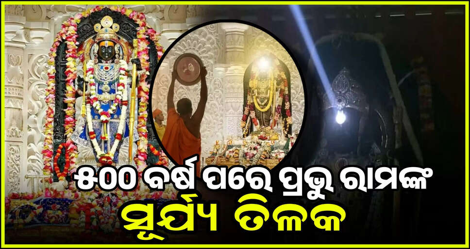 ଆଜି ରାମନବମୀ ପର୍ବ ଦିନରେ ସୂର୍ଯ୍ୟ ତିଳକ ସମୟରେ ସୂର୍ଯ୍ୟାଲୋକ ପ୍ରଭୁ ରାମଲାଲାଙ୍କ ଉପରେ ପଡ଼ିବ । ୪ ମିନିଟ ପର୍ଯ୍ୟନ୍ତ ସୂର୍ଯ୍ୟ କିରଣ ପଡ଼ିବ । ଆଜି ଭକ୍ତଙ୍କ ପାଇଁ ଏକ ବଡ ଦିନ ଅଟେ ।