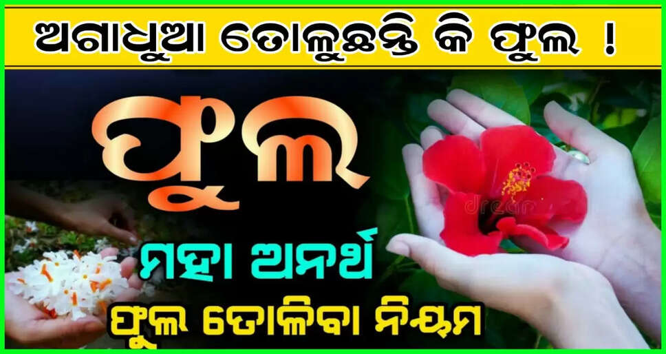 ନିଜ ଘରେ ଫୁଲ ଗଛ ଥିଲେ ଗାଧୋଇ ସାରି ତିନୋଟି ମନ୍ତ୍ର ଗାଇ ତୋଳିବା ଉଚିତ୍ । ମନ୍ତ୍ର ହେଉଛି, ଓମ୍ ବାରୁଣାୟ ନମଃ, ଓଁ ବୋମାୟ ନମଃ, ଓଁ ପୃଥିବୀ ନମଃ । ତୁଳସୀ ପତ୍ର ଗାଧୋଇ ସାରି ତୋଳିବା ଉଚିତ୍ । ଏଭଳି ଅନେକ ନିୟମ ରହିଅଛି ସବୁ ପୂଜା ଜିନିଷର । ଏହି ଭିଡିଓ ମାଧ୍ୟମରେ ଆପଣ ଜାଣିପାରିବେ ।