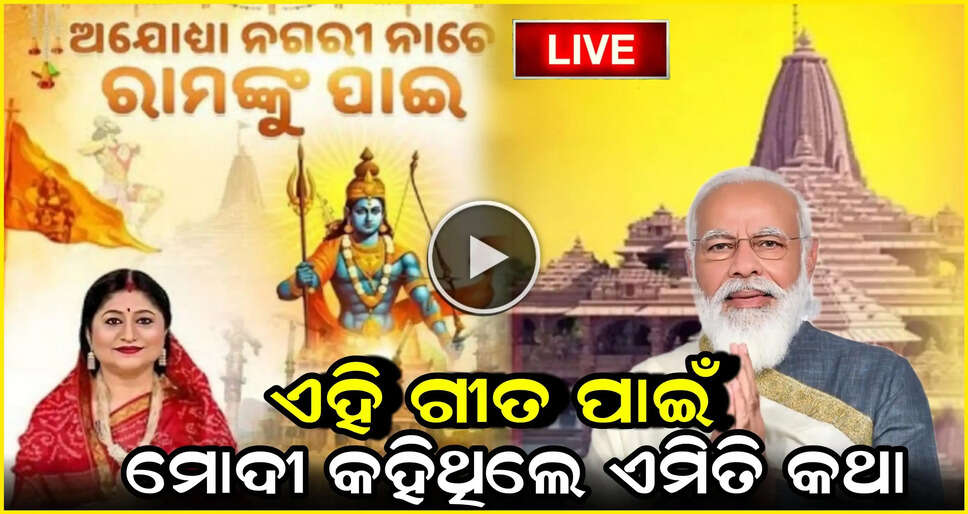 ନମିତା ଗାଇଥିବା ଏକ ଓଡ଼ିଆ ଶ୍ରୀରାମ ଭଜନଙ୍କୁ ପ୍ରଧାନମନ୍ତ୍ରୀ ନରେନ୍ଦ୍ର ମୋଦୀ ସୋସିଆଲ ମିଡ଼ିଆ ପ୍ଲାଟଫର୍ମ ଏକ୍ସ’ରେ ଶେୟାର କରିଛନ୍ତି । ଆଗକୁ ରାମଲଲାଙ୍କ ପ୍ରାଣ ପ୍ରତିଷ୍ଠା ଉତ୍ସବ ଥିବାବେଳେ ତା’ ପୂର୍ବରୁ ବିଭିନ୍ନ ଭାଷାରେ ଅନେକ ରାମ ଭଜନ ରିଲିଜ୍ ହେଉଥିବା ଦେଖାଯାଉଛି।