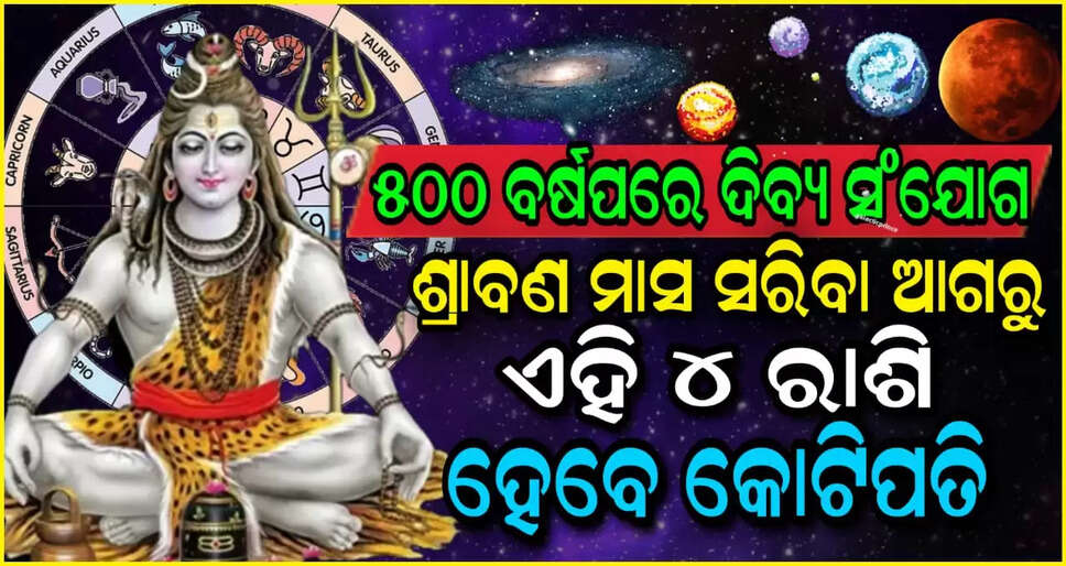 ୫୦୦ ବର୍ଷ ପରେ ଘଟୁଛି ଦିବ୍ୟ ସଂଯୋଗ ଦେଖନ୍ତୁ ଏହି ୪ ଟି ରାଶି ମାନଙ୍କର ଖୋଲିବ ଭାଗ୍ୟ ଶ୍ରାବଣ ମାସ ସରିବା ଆଗରୁ କୋଟିପତି