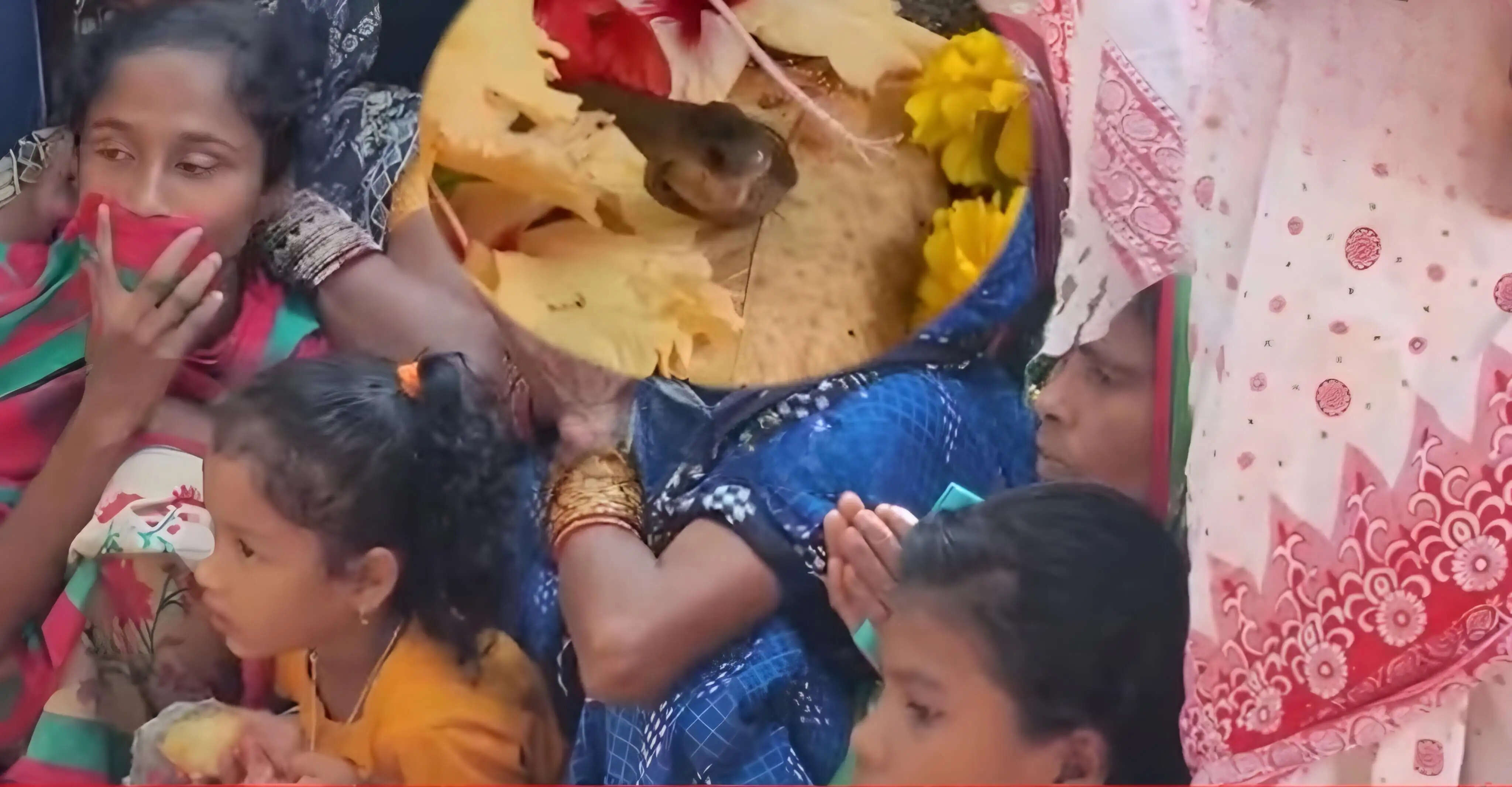 ଫୁଲ ଦୀପ ଧୂପ ଲଗାଇ ସରାରେ କ୍ଷୀର ଦେଇ ନଡ଼ିଆ କଦଳୀ ଭୋଗ କରି ନାଗ ସାପକୁ ପୂଜାର୍ଚନା କରୁଛନ୍ତି ଭକ୍ତ। ଆଜି ଭୋର୍ ତିନିଟା ସମୟରେ କିଛି ମହିଳା ମନ୍ଦିର ପ୍ରାଙ୍ଗଣକୁ ଝାଡୁ କରୁଥିବା ବେଳେ ସାପଟି ରହିଥିବା ଦେଖିବାକୁ ପାଇଥିଲେ।