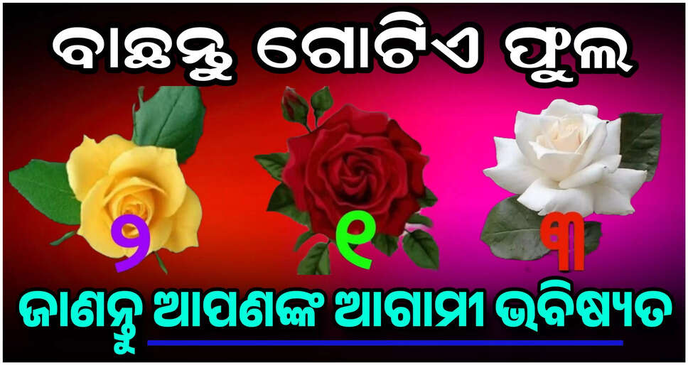 ତେବେ ଆଜି ଆମେ ଆପଣଙ୍କ ପାଇଁ ୩ଟି ରଙ୍ଗର ଫୁଲର ଚିତ୍ର ନେଇ ଆସିଛୁ। ଆପଣଙ୍କୁ ଏଠି ମଧ୍ୟରୁ ଯେ କୌଣସି ଗୋଟିଏ ଫୁଲ ଚୟନ କରିବାକୁ ହେବ। ଏହା ଦ୍ଵାରା ଆପଣ ନିଜର ଭବିଷ୍ୟତ ବିଷୟରେ ଜାଣି ପାରିବେ।
