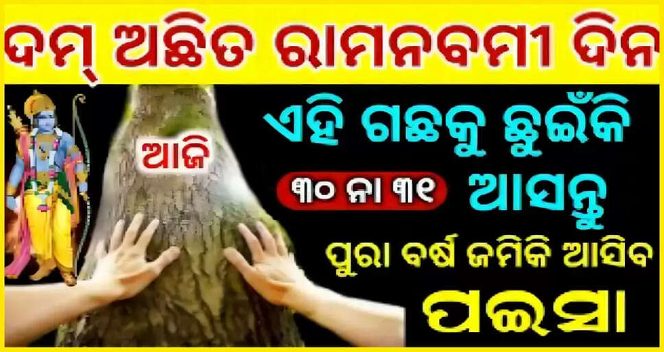 ଏହାକୁ ହିନ୍ଦୁ ଧର୍ମରେ ବହୁତ ବିଶ୍ବାସ କରାଯାଏ । ଏହି ଦିନ ଗୋଟିଏ ବୃକ୍ଷକୁ ଛୁଇଁଲେ ଆପଣଙ୍କ ଜୀବନର ସବୁ ଦୁଃଖ ଚାଲିଯିବ । ଆପଣଙ୍କର ମନୋକାମନା ପୂର୍ଣ୍ଣ ହେବ । ରାମନବମୀ ୩୦ ମାର୍ଚ୍ଚ ଗୁରୁବାର ଦିନ ପଡୁଅଛି ।
