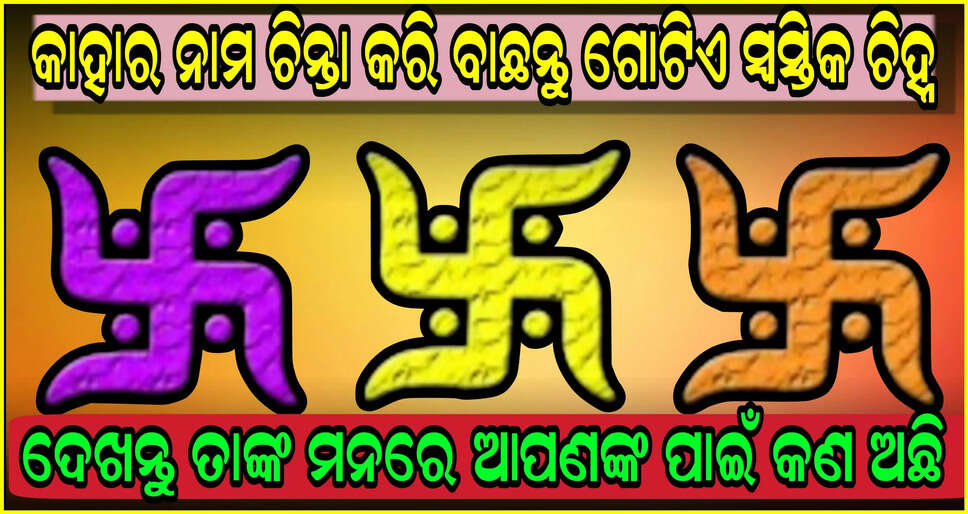 କାହାର ମଧ୍ୟ କଥା ଚିନ୍ତା କରି ବାଛନ୍ତୁ ଗୋଟିଏ ସ୍ଵସ୍ତିକ ଚିହ୍ନ ଆଉ ଜାଣନ୍ତୁ ତାଙ୍କ ମନରେ ଆପଣଙ୍କ ପ୍ରତି ଅଛି କେଉଁ ଚିନ୍ତାଧାରା