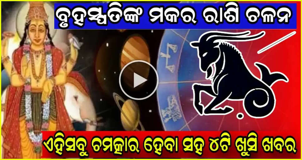 ବନ୍ଧୁଗଣ ଜ୍ୟୋତିଷ ଶାସ୍ତ୍ରରେ ଦେବଗୁରୁ ବୃହସ୍ପତିଙ୍କୁ ଜ୍ଞାନ, ସନ୍ତାନ, ଧନ, ଦାନ, ପୂଣ୍ୟ ଓ ବୃଦ୍ଧିର କାରକ ବୋଲି ବିବେଚନା କରାଯାଏ। ତେବେ, ଏହି କ୍ରମରେ ବୃହସ୍ପତି ବର୍ତ୍ତମାନ ମେଷ ରାଶିରେ ବିରାଜମାନ ଅଛନ୍ତି। ତେବେ ବୃହସ୍ପତିଙ୍କ ଏହି ଚଳନ ମକର ରାଶିକୁ ଶୁଭଫଳ ପ୍ରଦାନ କରିବ।