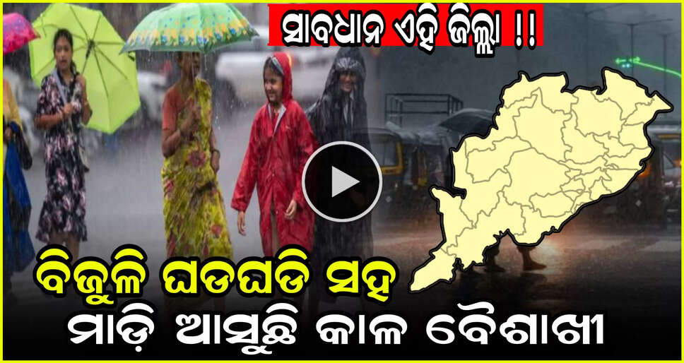 କିଛି ଜିଲ୍ଲାରେ କାଳବୈଶାଖୀ ବର୍ଷା ହେବ ବୋଲି ସୂଚନା ମିଳିଛି । ଆଉ ଏହି ଜିଲ୍ଲା ଗୁଡ଼ିକ ପାଇଁ ସତର୍କତା ଜାରି କରାଯାଇଛି । ବଲାଙ୍ଗୀର, କଳାହାଣ୍ଡି, ଗଞ୍ଜାମ, ଗଜପତି, ରାୟଗଡ଼ା, କୋରାପୁଟ, ନୂଆପଡ଼ା, ଏବଂ ନବରଙ୍ଗପୁର ଜିଲ୍ଲାରେ କାଳବୈଶାଖୀ ବର୍ଷା ହେବ ।
