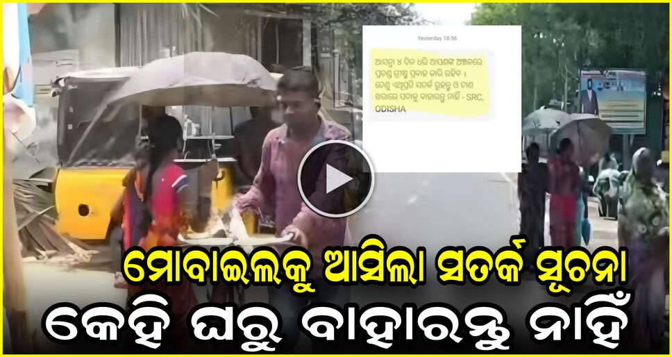 ମୋବାଇଲ୍ ରୁ ମୋବାଇଲ୍ ଏହି ମେସେଜ ଏବେ ସମସ୍ତଙ୍କ ମୋବାଇଲକୁ ଆସିଛି । ଜନ ସାଧାରଣଙ୍କୁ ଏହି ମେସେଜ ମାଧ୍ୟମରେ ସତର୍କ କରାଯାଇଛି । ଆସନ୍ତା ୪ ଦିନ ପାଇଁ ପାଗ ଏଭଳି ରହିବ । ଆଉ ଖରାରେ ଲୋକମାନେ ଘରୁ ନ ବାହାରିବା ପାଇଁ କୁହାଯାଇଛି ।