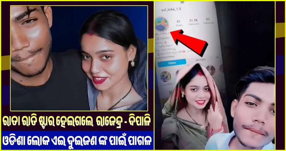 ନମସ୍କାର ପାଠକ ବନ୍ଧୁ।ଏବେ ସୋସିଆଲ ମିଡିଆରେ ଭାଇରାଲ ହେଉଛନ୍ତି ରାଜେନ୍ଦ୍ର ଓ ଦିପାଞ୍ଜଳି। ରାତାରାତି ସୋସିଆଲ ମିଡ଼ିଆ ରେ ଷ୍ଟାର ବନି ଯାଇଛନ୍ତି ଏହି ଦୁଇ ଜଣ।ଏମାନଙ୍କୁ ଦେଖି ଅନ୍ୟ ଲୋକ ମାନେ ଏବେ ଇର୍ଷା କରୁଛନ୍ତି।କହୁଛନ୍ତି କି ଏମାନେ ଏପରି କଣ କଲେ କି ରାତାରାତି ଷ୍ଟାର ବନି ଗଲେ।