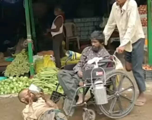 ଜଣେ ବ୍ୟକ୍ତି ହ୍ୱିଲ ଚେୟାରରେ ବସିଥିଲେ । ଆଉ ଜଣେ ତାଙ୍କ ପଛରେ ଥିଲେ ଯାହାଙ୍କର ଗୋଟିଏ ଗୋଡ ନଥିଲା । ଆଉ ଆଗରେ ଜଣେ ବ୍ୟକ୍ତି ଯାଉଥିଲେ ଯାହାର ଗୋଡ଼ ଦୁଇଟି ନାହିଁ । ଏହି ତିନିଜଣ ଏକାଠି ଯାଇ ଭିକ୍ଷା ବୃତ୍ତି କରୁଛନ୍ତି ।