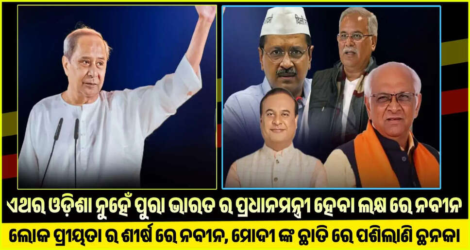 ଜନତା ଙ୍କ ପ୍ରଶଂସା ସାଉଁଟି ବାରେ ଏବେ ପ୍ରଥମ ସ୍ଥାନରେ ଅଛନ୍ତି ଓଡ଼ିଶାର ମୁଖ୍ୟମନ୍ତ୍ରୀ ନବୀନ ପଟ୍ଟନାୟକ। ଜାତୀୟ ସ୍ତରରେ ସର୍ଭେ କହିଛି କି ଜାତୀୟ ସ୍ତରରେ ସର୍ଭେ ରେ ଲୋକପ୍ରିୟତା ରେ ନବୀନ ନମ୍ବର୍ ୱାନ ରେ ଅଛନ୍ତି।
