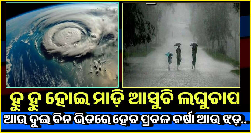 ହୁ ହୁ ହୋଇ ମାଡ଼ି ଆସୁଚି ଲଘୁଚାପ ଆଉ ଦୁଇ ଦିନ ଭିତରେ ହେବ ପ୍ରବଳ ବର୍ଷା ଆଉ ଝଡ଼..