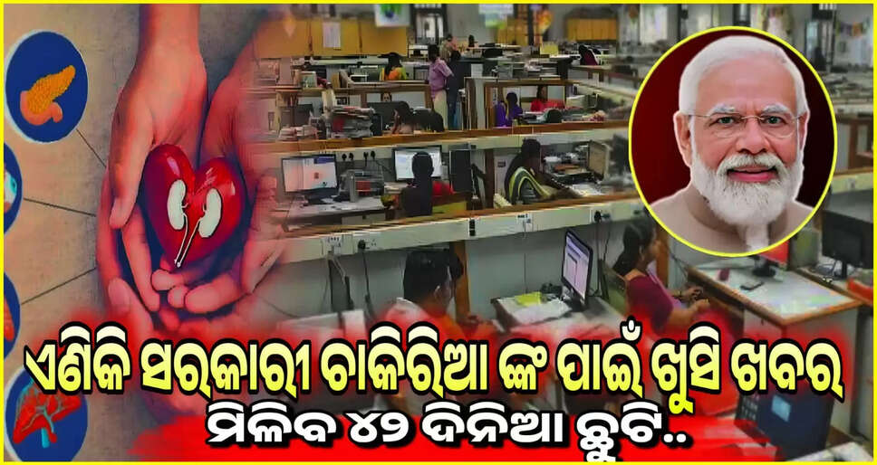 ଏଣିକି ସରକାରୀ ଚାକିରିଆ ଙ୍କ ପାଇଁ ଖୁସି ଖବର, ମିଳିବ ୪୨ ଦିନିଆ ସରକାରୀ ଛୁଟି , ଦେଖନ୍ତୁ କେବେ ଠୁ ହେବ ଲାଗୁ
