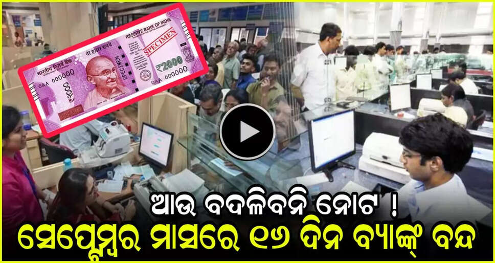ସେପ୍ଟେମ୍ବର ବିଭିନ୍ନ ଦେଶରେ ଭିନ୍ନ ଭିନ୍ନ ବ୍ୟାଙ୍କ ଛୁଟିରେ ରହିଥିବାରୁ ନୋଟ୍ ଫେରେଇବାକୁ ଚାହୁଁଥିବା ଲୋକ ମାନଙ୍କ ଉପରେ ନଜର ଦେବାକୁ ପଡ଼ିବ। ସବୁ ରବିବାର ତିଥି ଓ ଚତୁର୍ଥ ଶନିବାରକୁ ମିଶାଇ ସେପ୍ଟେମ୍ବର ୧୬ ଦିନ ବ୍ୟାଙ୍କ ଛୁଟି ରହିବ।