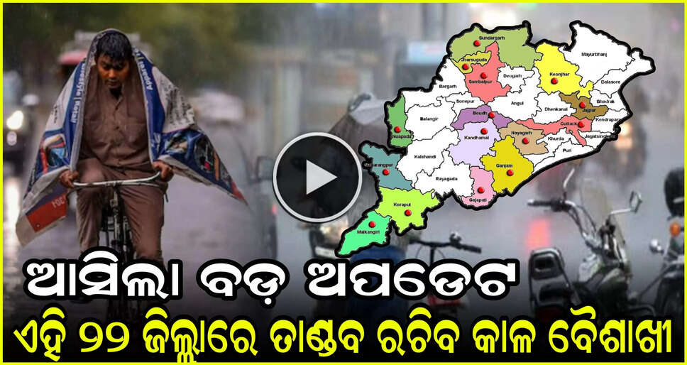 ଏବେ କାଳବୈଶାଖୀକୁ ନେଇ ଆସିଛି ତାଜା ଖବର । ପ୍ରବଳ ରୁ ଅତି ପ୍ରବଳ ବର୍ଷା ହେବ ବୋଲି ସୂଚନା ମିଳିଛି । ଆକାଶରୁ ଖସିବ ବିଜୁଳି ସହ ତୁହା କୁ ତୁହା ଘଡଘଡି । କଳାହାଣ୍ଡିଆ କରି ମାଡ଼ି ଆସିବ ମେଘ । ଦିନ ଥାଉ ଥାଉ ଆକାଶର ରଙ୍ଗ ବଦଳିଯିବ ।