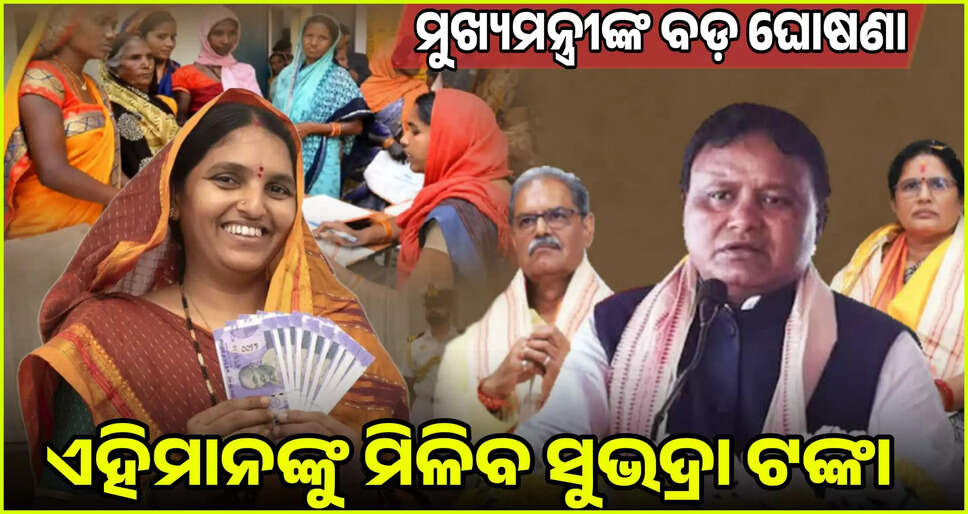 ମୁଖ୍ୟମନ୍ତ୍ରୀ କଲେ ବଡ଼ ଘୋଷଣା ଦେଖନ୍ତୁ ଏହି ମାନଙ୍କୁ ମିଳିବ ସୁଭଦ୍ରା ଯୋଜନାରେ ୫୦୦୦୦/- ଟଙ୍କା