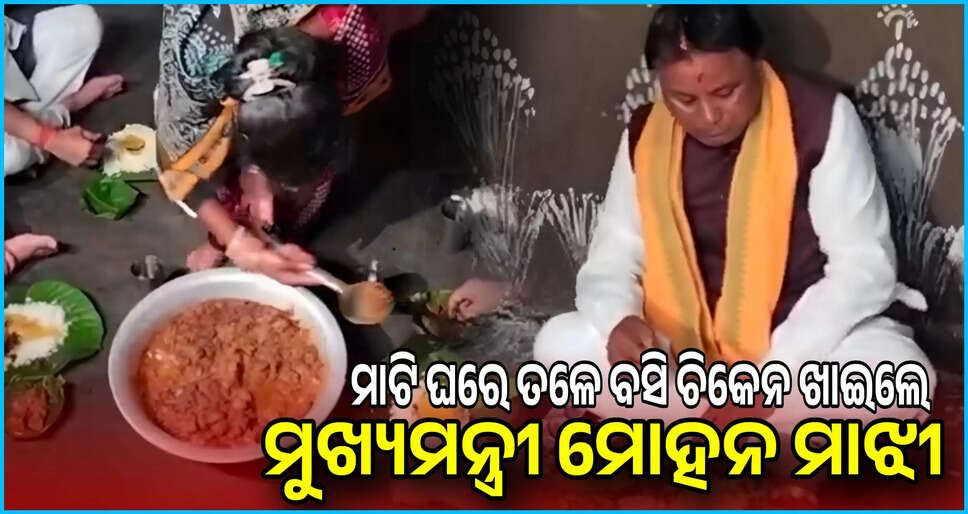 ମାଟି ଘରେ ତଳେ ବସି ଚିକେନ ଖାଇଲେ ମୁଖ୍ୟମନ୍ତ୍ରୀ ମୋହନ ଚରଣ ମାଝୀ ଦେଖନ୍ତୁ ଏହି ସୁନ୍ଦର୍ ଦୃଶ୍ୟ