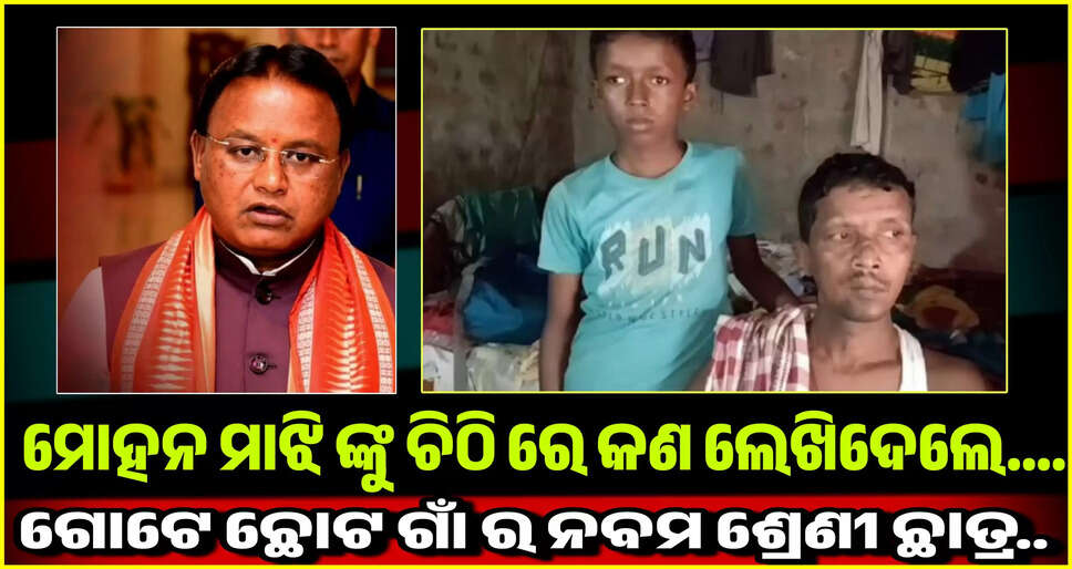 ନମସ୍କାର ପାଠକ ବନ୍ଧୁ । ବନ୍ଧୁଗଣ ଆପଣମାନେ ସମସ୍ତେ ସୋସିଆଲ ମିଡିଆରେ ସବୁ ପ୍ରକାରର ଖବର ପାଇପାରିବେ । ଆପଣମାନେ ସମସ୍ତେ ଏହି ଭିଡିଓ ମାଧ୍ୟମରେ ଅନେକ କିଛି ଖବର ପାଇବା ସହ ଅନେକ ବିଷୟରେ ଜାଣିପାରିବେ । ଏବେ ଖବର ଆସିଛି ମୁଖ୍ୟମନ୍ତ୍ରୀ ମୋହନ ମାଝୀଙ୍କୁ ଜଣେ ନବ ଶ୍ରେଣୀର ଛାତ୍ର ଚିଠି ଲେଖିଛି । ଏହି ଛାତ୍ର ଜଣକ ଚିଠିରେ କଣ ସବୁ ଲେଖିଛନ୍ତି ତାହା ଆପଣମାନେ ଜାଣିପାରିବେ । ଚିଠିର ପିଲା ଜଣକ ଯାହା ଲେଖିଛି ତାହା ଶୁଣିଲେ ଆପଣଙ୍କ ମନରେ ଅନେକ କଥା ଆସିବ ।