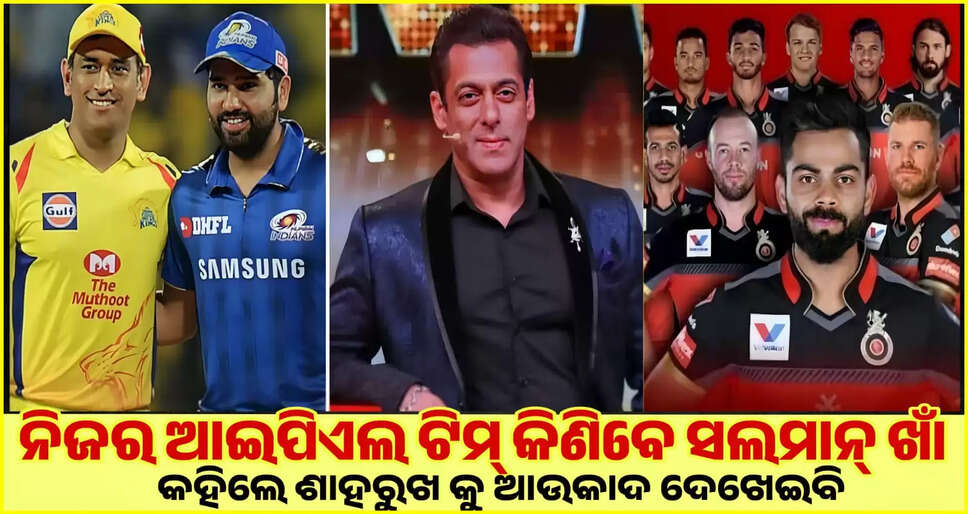 ଅଭିନେତା ସଲମାନ୍ ଖାନଙ୍କୁ ନେଇ ଏବେ ଖବର ଆସିଛି । ଏହି ଖବର ହେଉଛି କି ବଲିଉଡ ଅଭିନେତା ସଲମାନ୍ ଖାନ୍ କରିଲେ ଆଇପିଏଲ କ୍ରିକେଟ ଖେଳରେ ଏଣ୍ଟ୍ରି ।