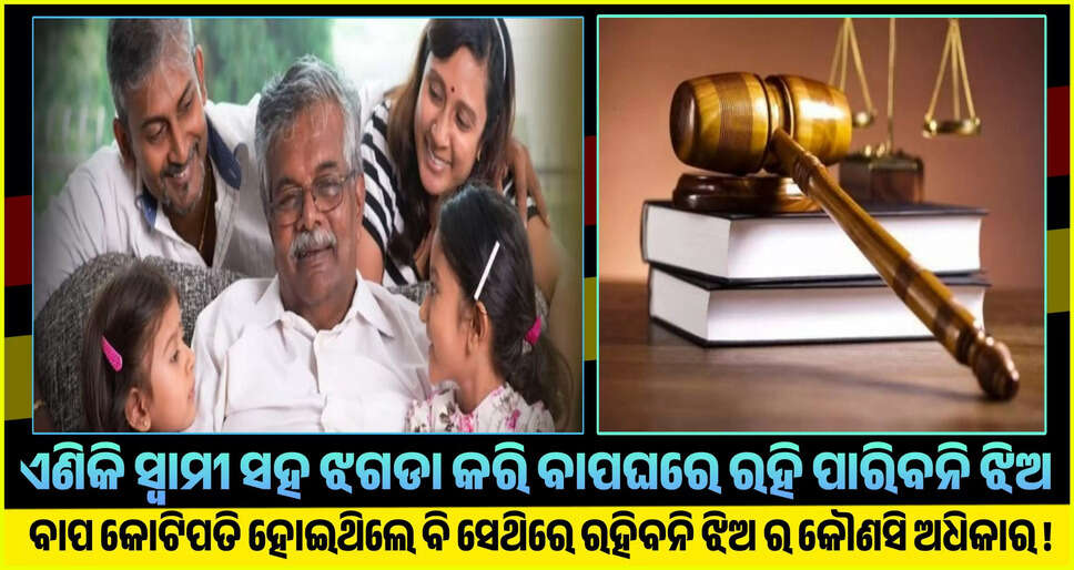 ଏଣିକି ସ୍ଵାମୀ ସହ ଝଗଡା କରି ବାପ ଘରେ ରହି ପାରିବନି ଝିଅ, ବାପା ଯେତେ କୋଟିପତି ହୋଇଥିଲେ ବି ସେଥିରେ ରହିବନି ଝିଅ ର କୌଣସି ଅଧିକାର