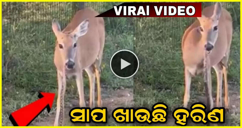 ହେଲେ ଏହି ହରିଣର ଭାଇରାଲ ହେଉଥିବା ଦୃଶ୍ୟ ଦେଖି ସମସ୍ତେ ଆଶ୍ଚର୍ଯ୍ୟ ହୋଇ ଯାଇଛନ୍ତି।କିଭଳି ଭାବେ ହରିଣ ସାପକୁ ଖାଇ ପାରୁଛି ତାହା ନେଇ ବର୍ତ୍ତମାନ ସବୁଠି ପ୍ରଶ୍ନ ଉଠୁଛି।