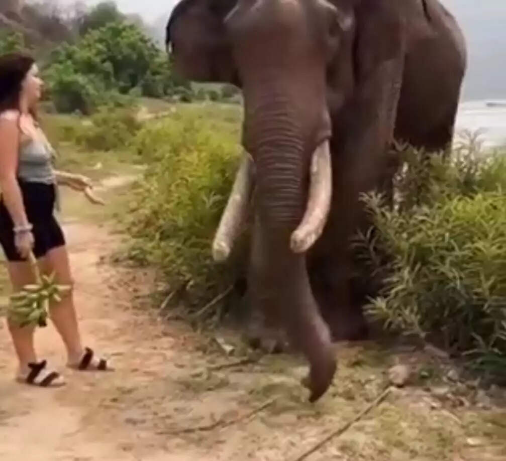 ଏବଂ ଏହାପରେ ସେ ଯୁବତୀ ଜଣକ ହାତରେ ଏକ କଦଳୀ ରଖି ହାତୀକୁ ଖାଇବା ପାଇଁ ଆଶା ଦେଉଛନ୍ତି ହେଲେ ସେହି କଦଳୀ କୁ ସେ ହାତୀ କୁ ନଦେଇ ହାତୀ ନିକଟରୁ ଫେରାଇ ଆଣୁଛନ୍ତି। ଏଭଳି ଯୁବତୀ ଜଣକ ବାରମ୍ବାର କରିଛନ୍ତି।