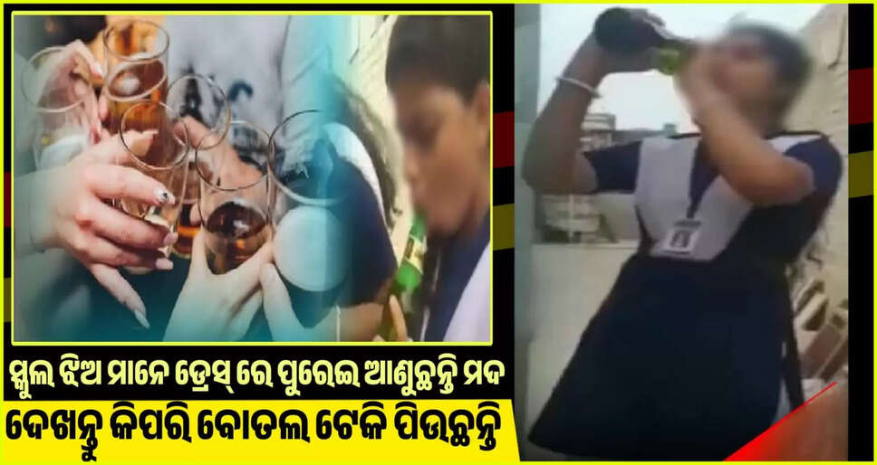 ସ୍କୁଲ ଝିଅ ମାନେ ଡ୍ରେସ୍ ରେ ପୁରେଇ ଆଣୁଛନ୍ତି ମଦ! ଦେଖନ୍ତୁ କିପରି ବୋତଲ ଟେକି ପିଉଛନ୍ତି