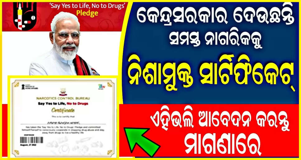 କେନ୍ଦ୍ର ସରକାର ଦେଉଛନ୍ତି ସମସ୍ତ ନାଗରିକ ଙ୍କୁ ନିଶା ମୁକ୍ତି ସାର୍ଟିପିକେଟ ଦେଖନ୍ତୁ ଏହିପରି ଭାବରେ କରିବେ ଆବେଦନ ମାଗଣାରେ