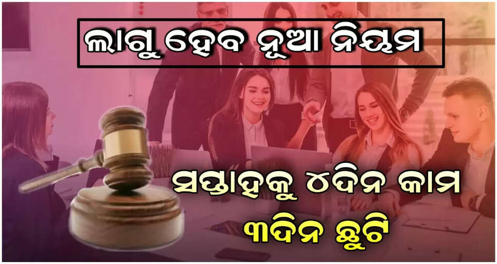 ବଡ ଖୁସି ଖବର - ଲାଗୁ ହେବ ନୂଆ ନିୟମ ଏଥର ସପ୍ତାହକୁ ୪ଦିନ କାମ ୩ଦିନ ଛୁଟି ଜାଣନ୍ତୁ କେବେ ହେବ ଆରମ୍ଭ