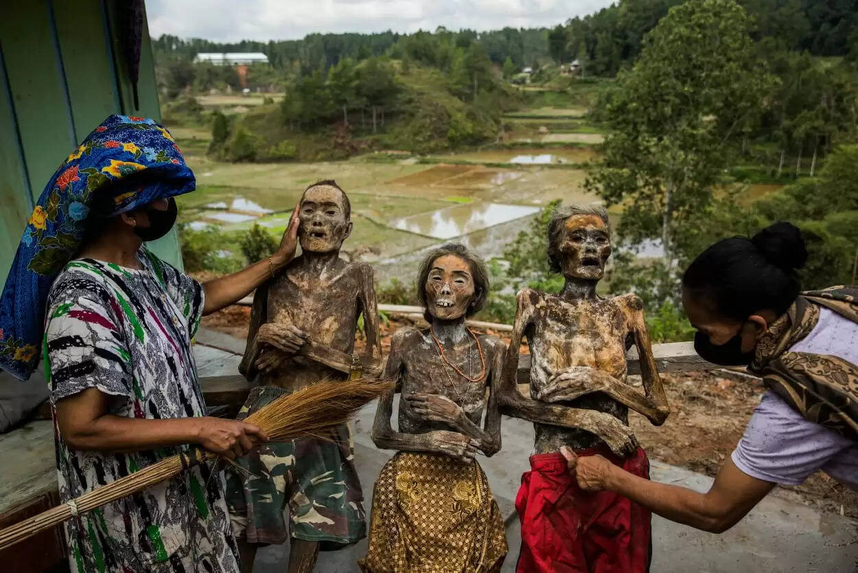 ଯେତେବେଳେ ସେମାନଙ୍କର ମୃ-ତ୍ୟୁ ହୁଏ । ସେମାନଙ୍କ ଦେହରେ ଏକ ଗଛର ପତ୍ର ଦିଆଯାଇଥାଏ । ସେଥିପାଇଁ ତାଙ୍କ ଶରୀର ସଢ଼ି ନଥାଏ । ଆଉ ସେମାନେ ତାଙ୍କୁ ସଫା କରି ପୋଷାକ ପିନ୍ଧାଇ ଘରେ ରଖିଥାନ୍ତି । ଶବ ହୋଇଥିଲେ ମଧ୍ୟ ସେମାନେ ପରିବାରର ସଦସ୍ୟ ଭଳି ତାଙ୍କ ସହିତ କଥାବାର୍ତ୍ତା କରିଥାନ୍ତି ।